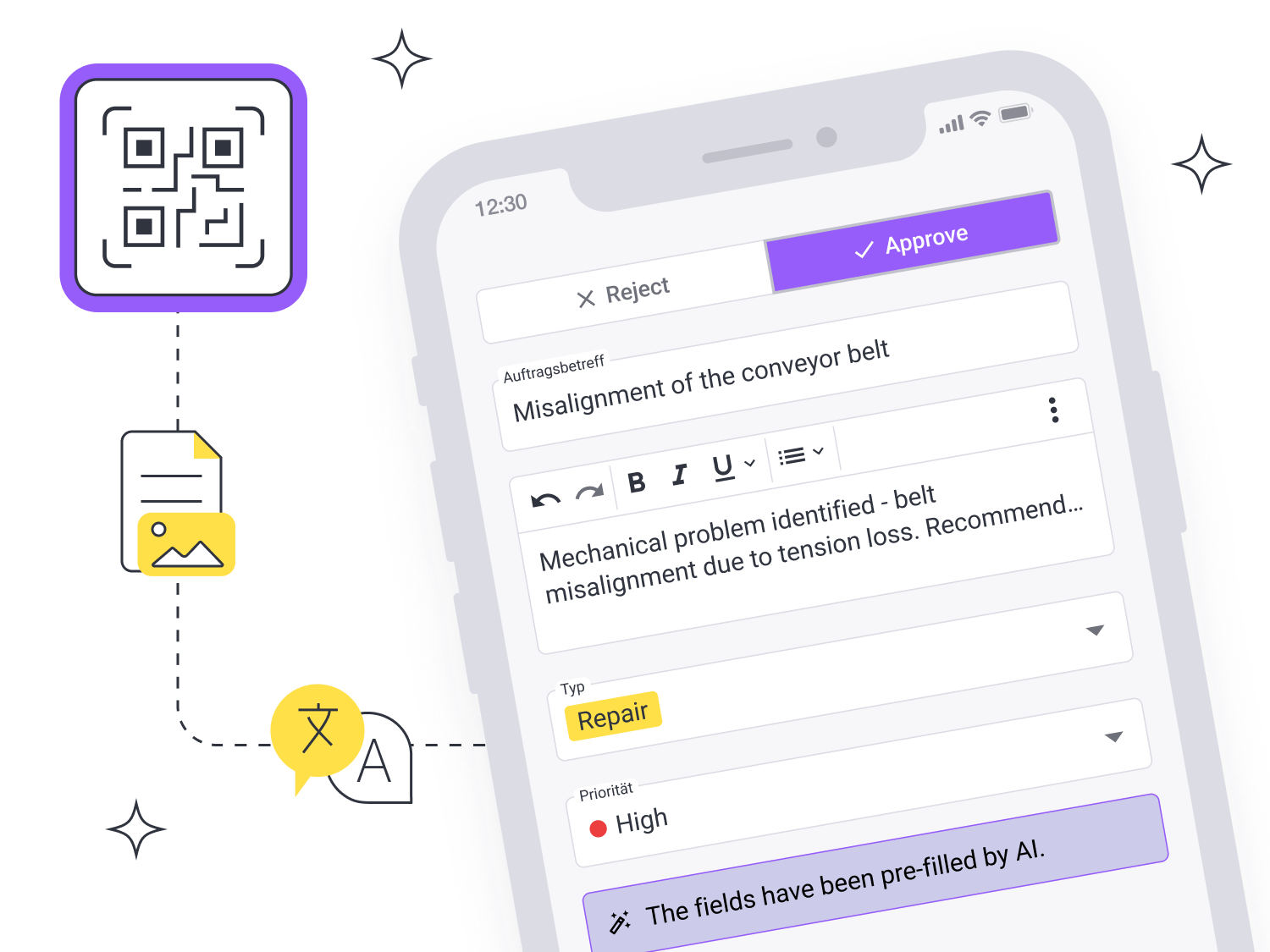 Capture every asset issue in natural language, then ask AI Copilot questions to work right first time during planning and execution. Generate ad-hoc procedures in seconds, and auto-fill work orders from text, images, or video including title, priority, steps, and asset link.